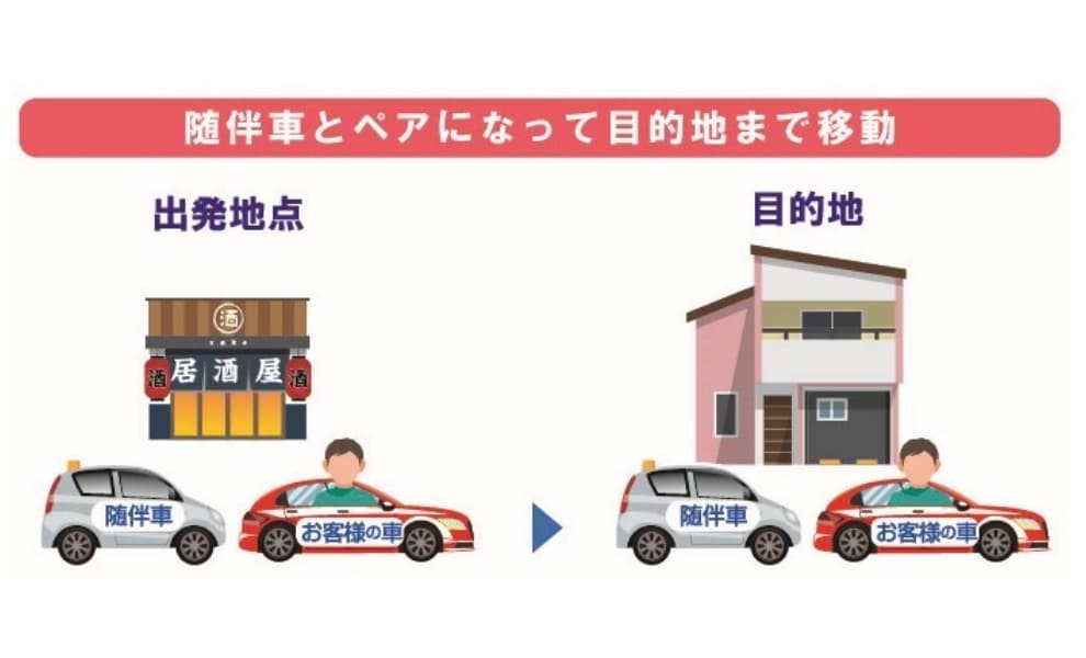 運転代行適正化法第2条にある運転代行定義において随伴車が「常態として随伴する」と記載がありますが、随伴の距離については定義されていないため、代行の開始と終了時において随伴車があれば、複数の客車に対して1台の登録随伴車においてドライバーを回収する回収型運転代行の形態についても適正化法内の運転代行として認められています。