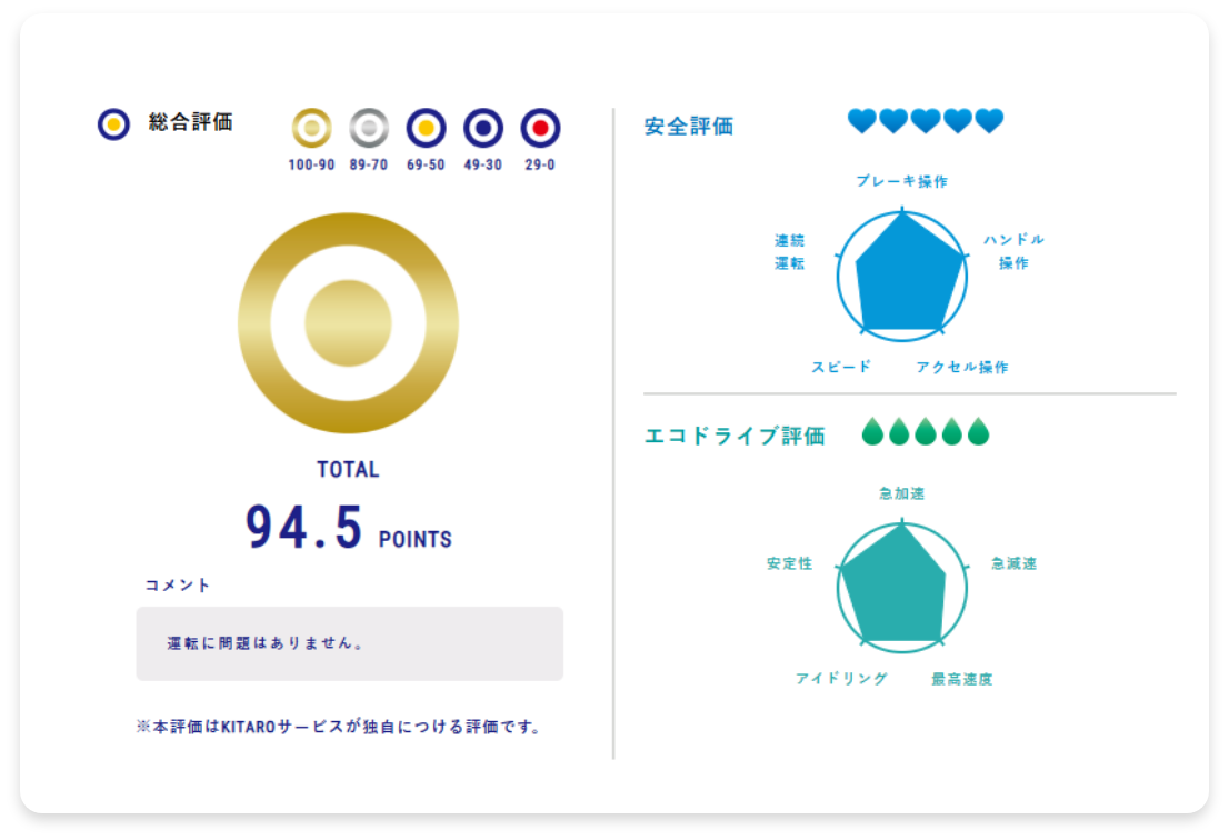 急発進・急ブレーキなどの危険運転をデータで可視化。客観的データに基づいた個別の運転指導が可能に。安全運転意識とスキルの向上を促し、事故リスクを大幅に低減します。